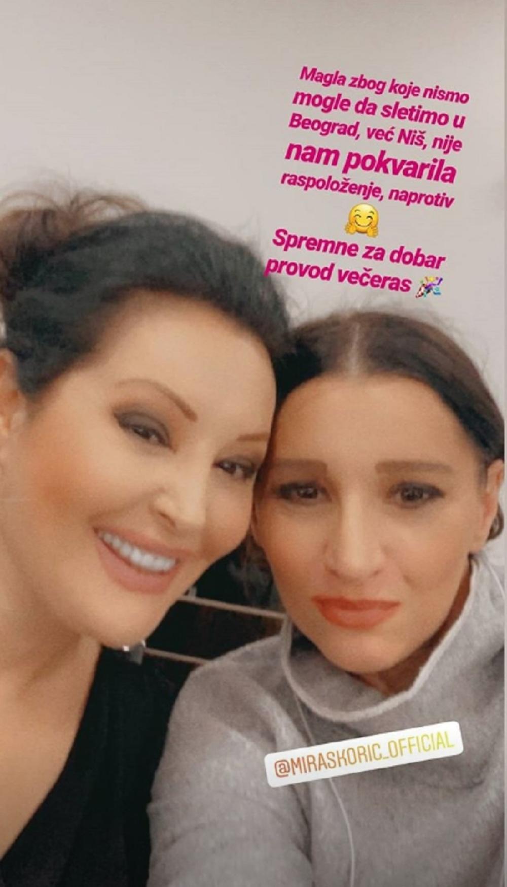 "Magla zbog koje nismo mogle da sletimo u Beograd, već Niš, nije nam pokvarila raspoloženje, naprotiv! Spremne za dobar provod večeras", napisala je Dragana uz slike koje objavila na svom Instagramu.