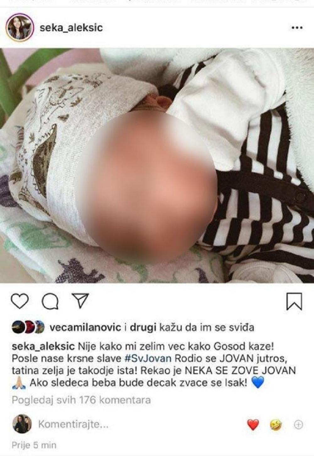 - Nije kako mi želimo, već kako Gospod kaže. Posle naše krsne slave Sveti Jovan, rodio se Jovan - objavila je Seka na svom Instagram profilu i tako oduševila javnost Srbije.