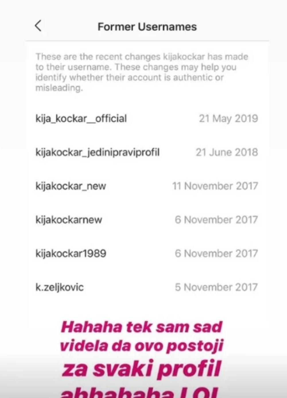 Kija je sada odlučila da sa svojim pratiocima podeli informaciju o tome kako se ranije prezivala, odnosno kako se predstavljala na društvenoj mreži Instagram.