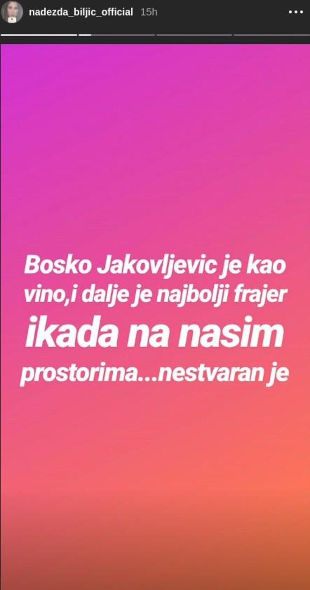 - Boško Jakovljević je kao vino i dalje je najbolji frajer ikada na našim prostorima - nestvaran je - napisala je Nadežda.