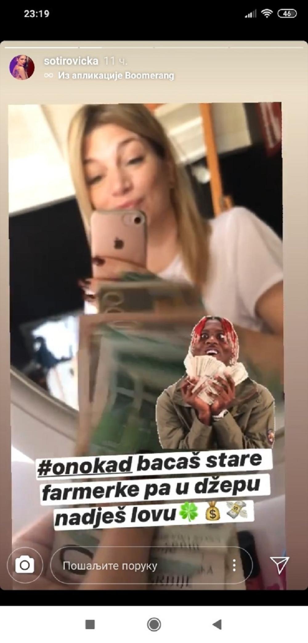 - Ono kada bacaš stare farmerke, pa u džepu nađeš lovu - napisala je Katarina na slici gde se jasno vidi hrpa novca koji je izvukla kao premiju iz farmerki za bacanje.