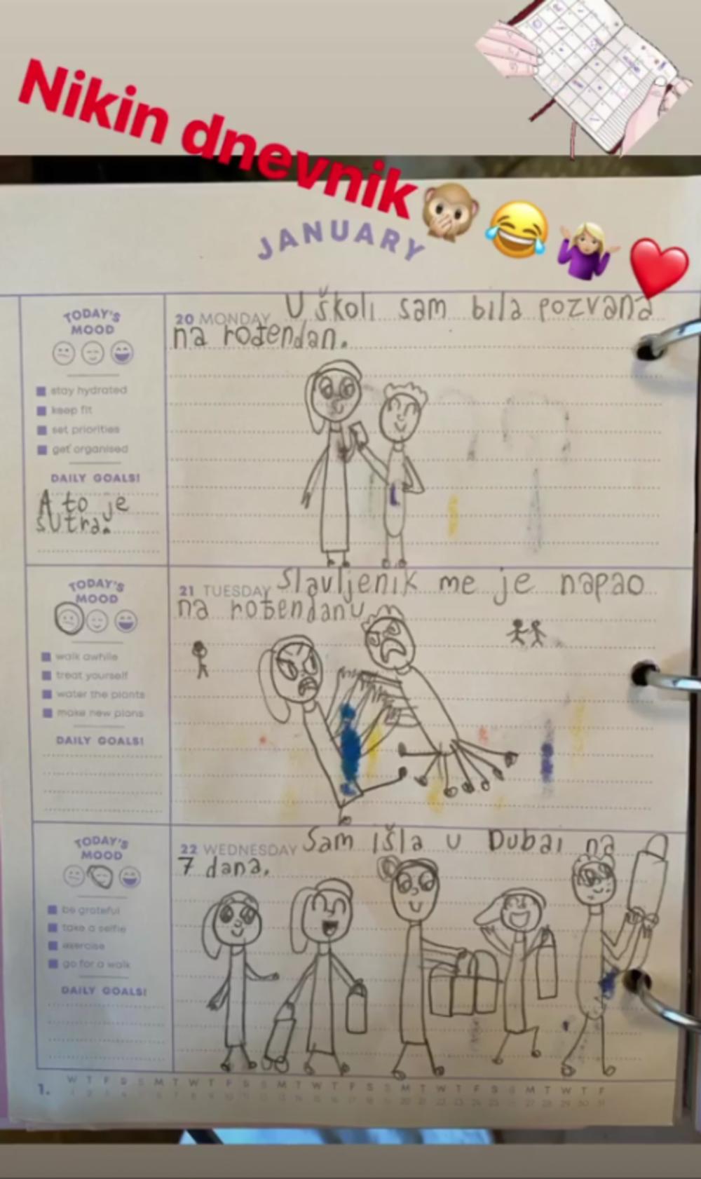 Mala Nika napisala je u svom dnevniku šta je sve radila tokom 3 dana, a budući da ide u internacionalnu školu, nema sumnje da Karleuša i suprug Duško Tošić itekako ulazu u znannje i obrazovanje svoje dece.