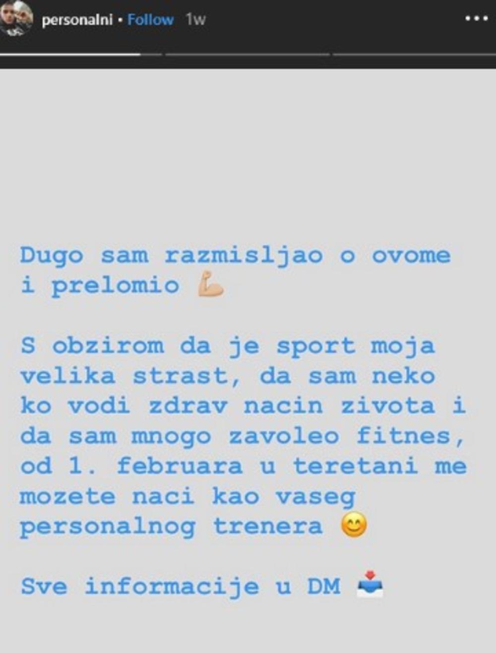 Anđelo je pre nekoliko dana postao personalni fitnes instruktor u jednoj prestoničkoj teretani.