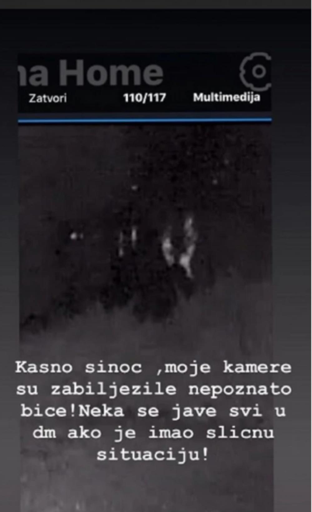 - Kasno sinoć, moje kamere su zabeležile nepoznato biće. Neka se svi jave u DM ako je imao sličnu situaciju - napisala je ona u prvom storiju.