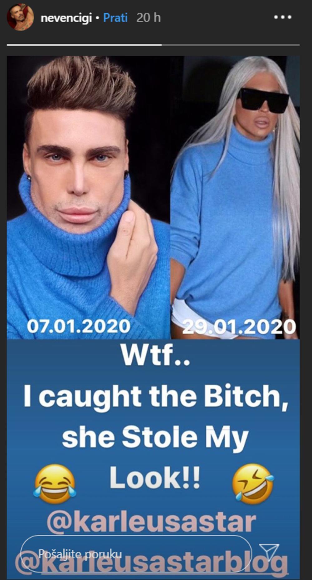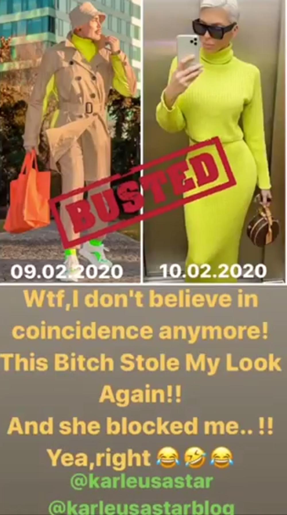 - Ne verujem više u koincidenciju. Ova kučka mi je ponovo ukrala stajling! I blokirala me - osvanulo je na Instagramu.