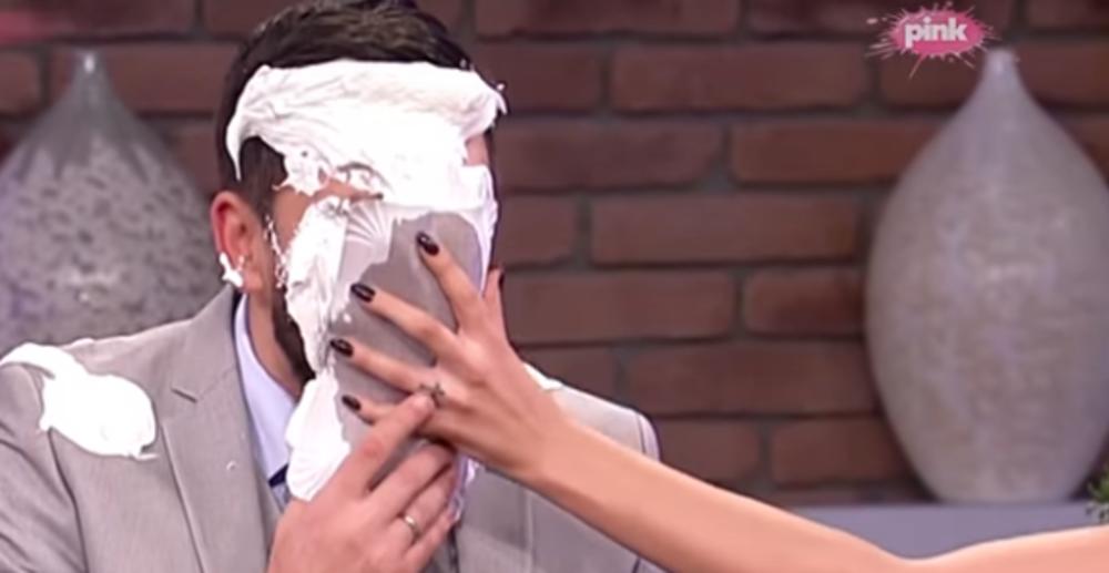 Ti vrlo dobro znaš da nije kraj kad ti kažeš, nego kad ja kažem. Za sve ovo što si uradio, za sve javne ličnosti, za mene. Svaki put si nas mazao svim i svačim, mislim da je osveta došla - rekla je Kaća i zalepila tortu voditelju Ognjenu u lice.