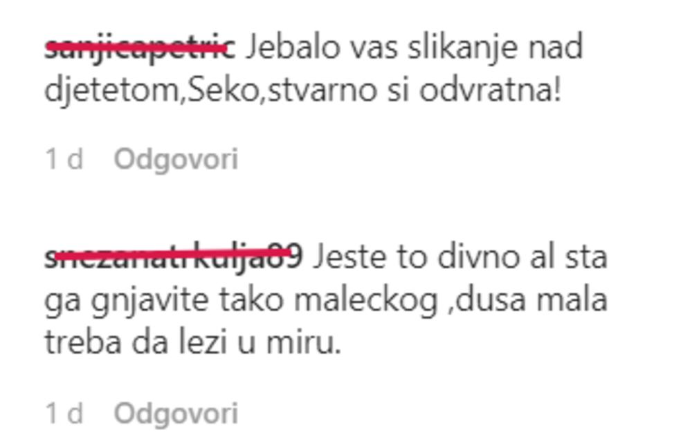 Seka često objavljuje na svom Instagram profilu sliku dece, pa tako i bebe Jovana. Objava je za kratko vreme dostigla veliki broj lajkova, a ljudi komentarišu na koga mališan liči.