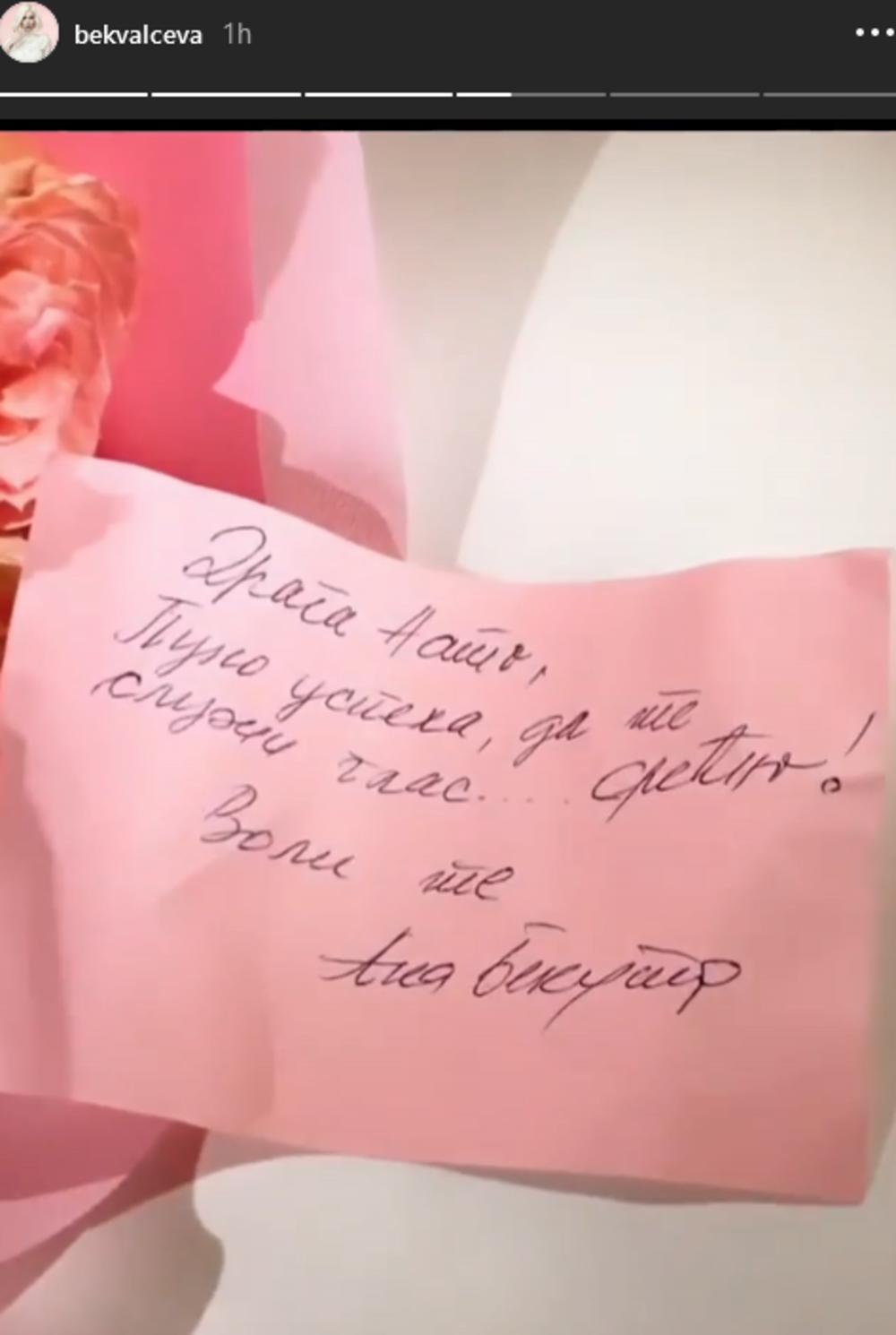 - Draga Nato, puno uspeha, da te služi glas... srećno! Voli te Ana Bekuta - stajalo je u poruci koja je pevačici stigla uz cveće.
