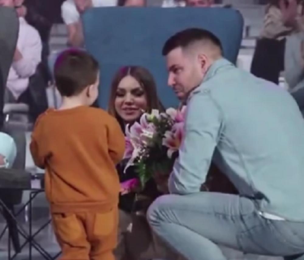 Naime, Ivanin suprug, pevač Petar Mitić se u jednom momentu emisije popeo na scenu i zajedno sa njihovim sinom Vujadinom i Ivani poklonio veliku korpu cveća.