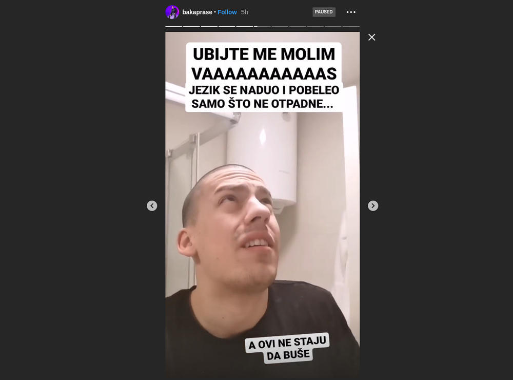 - Ubijte me, molim vas! Jezik se naduo i pobeleo, samo što ne otpadne - napisao je na svom Instagram storiju.