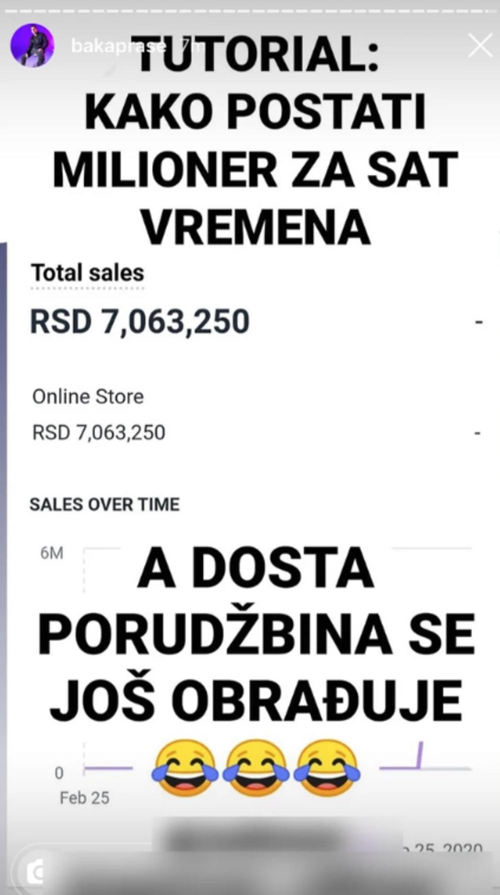 Baka Prase je te pare zaradio zahvaljujući svom brendu, a kaže da narundžbine još pristižu tako da ko zna koliko će miliona inkasirati samo do kraja ovog dana. - piše Blic.