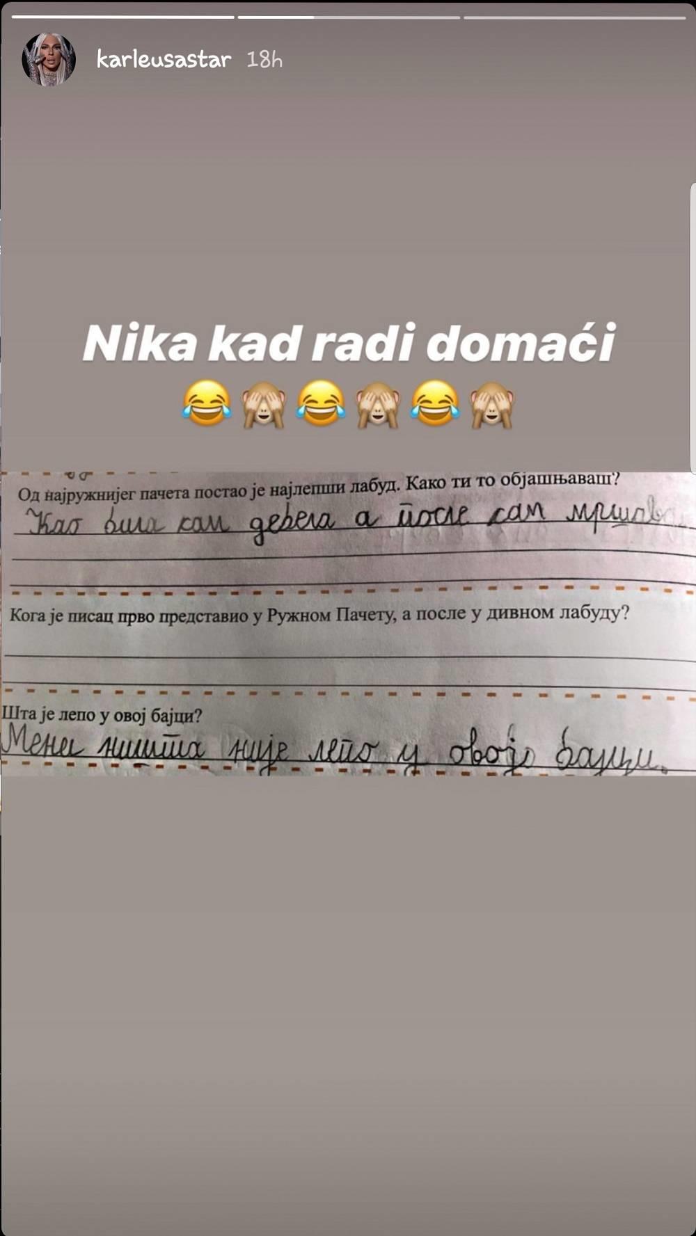 Jelena Karleuša nasmejala je svoje pratioce na Instagramu objavivši odgovore svoje mlađe kćerke Nike na jedan školski zadatak.