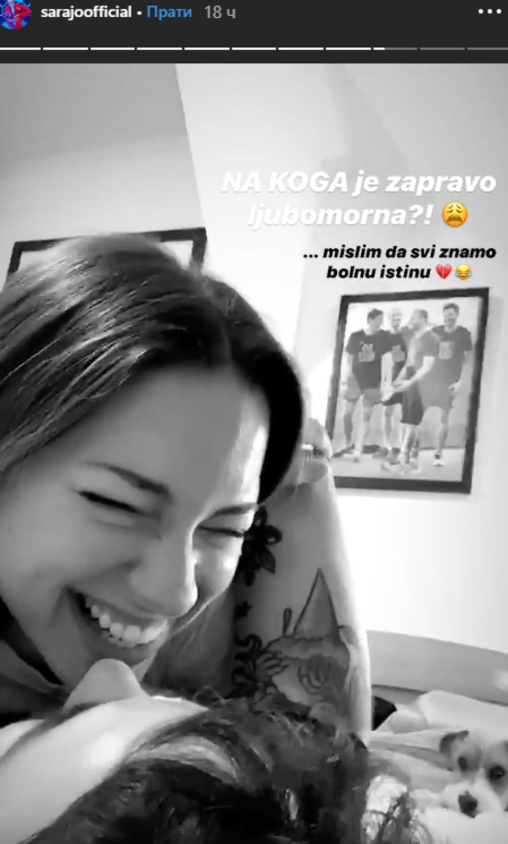 Međutim, sa vremena na vreme zna da objavi fotografije sa njim, a sada i video na svom Instagram storiju koji možete pregledati i vi na kojem oni razmenjuju nežnosti dok njeno kuče laje na njih.