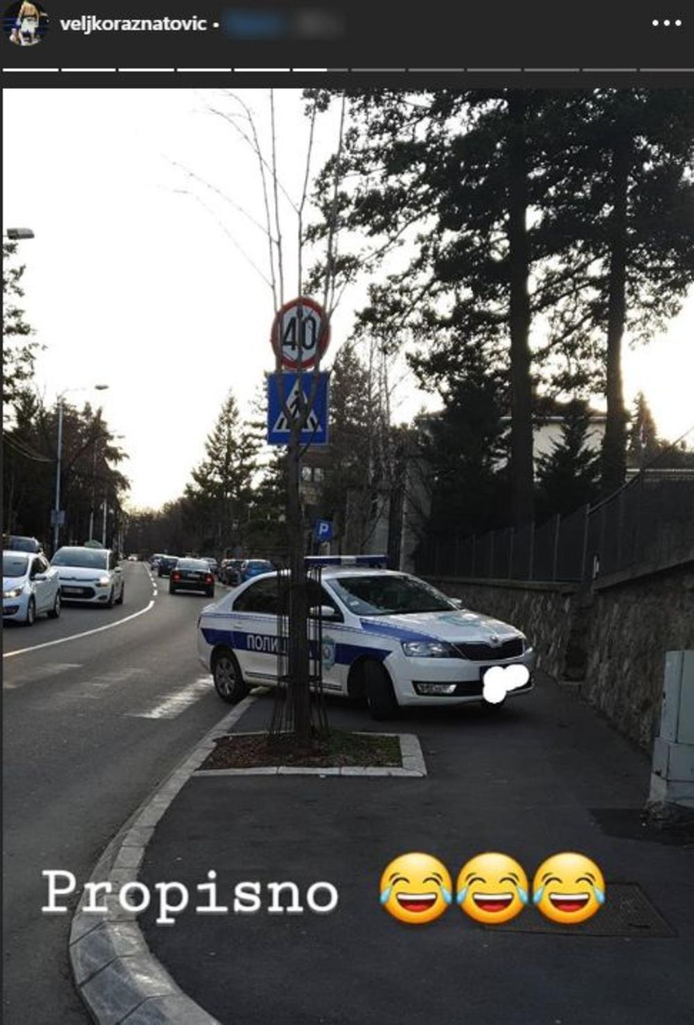 Veljko Ražnatović na svom Instagram profilu postavio je fotografiju na kojoj je, ako je sudeći po njegovom storiju policijski automobil nepropisno parkiran.