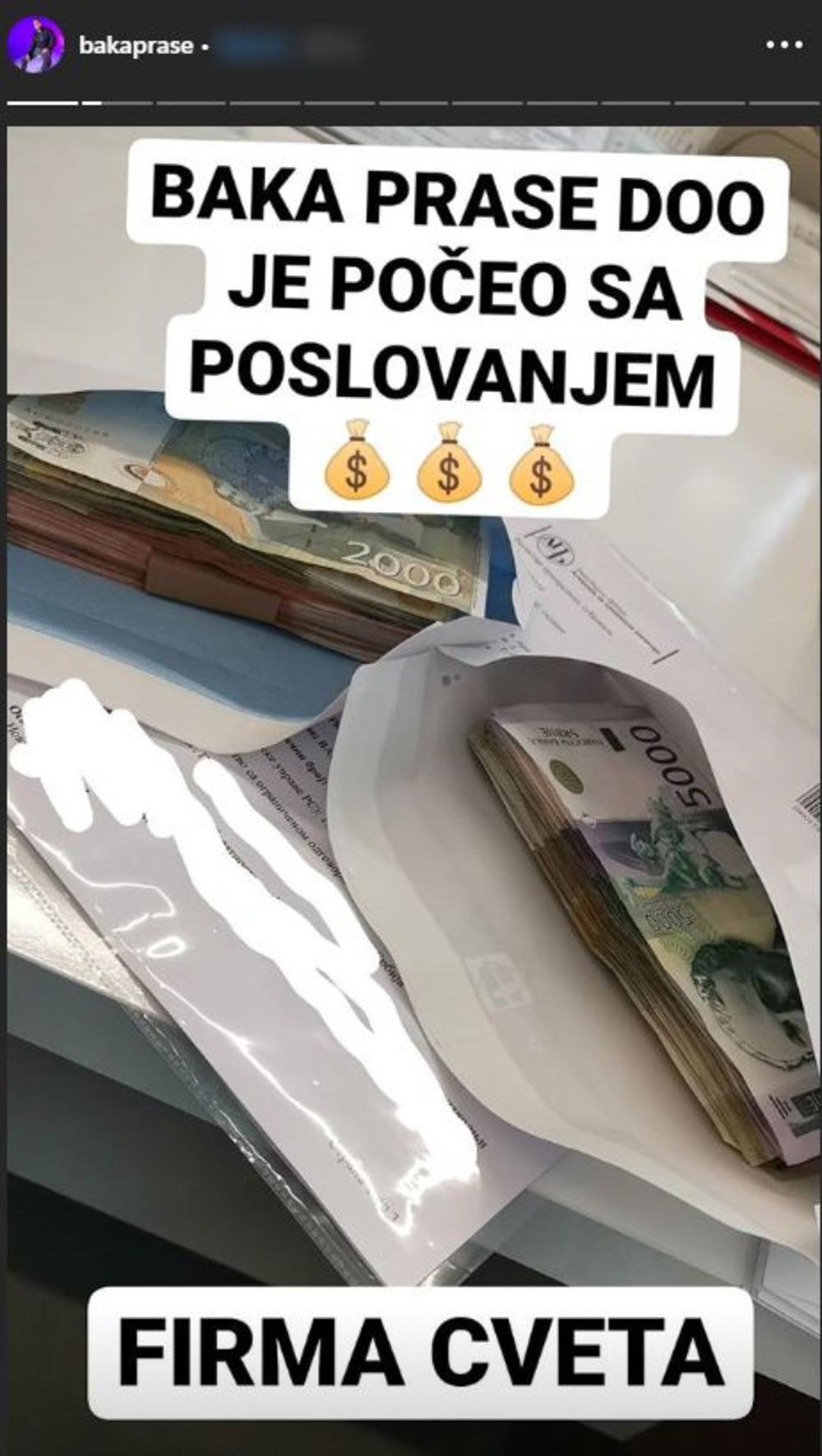 Baka Prase fotografisao novac i postovao na svoj Instagram