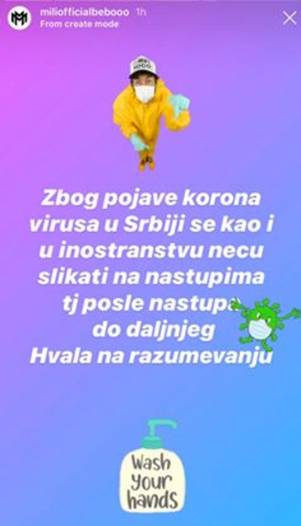 MiliReper MiliMili ne želi da se pozdravlja sa fanovimaMili uveo pravila za svoje nastupeMili ne želi da grli fanoveEstradaMili uveo pravila zbog Korona virusa
