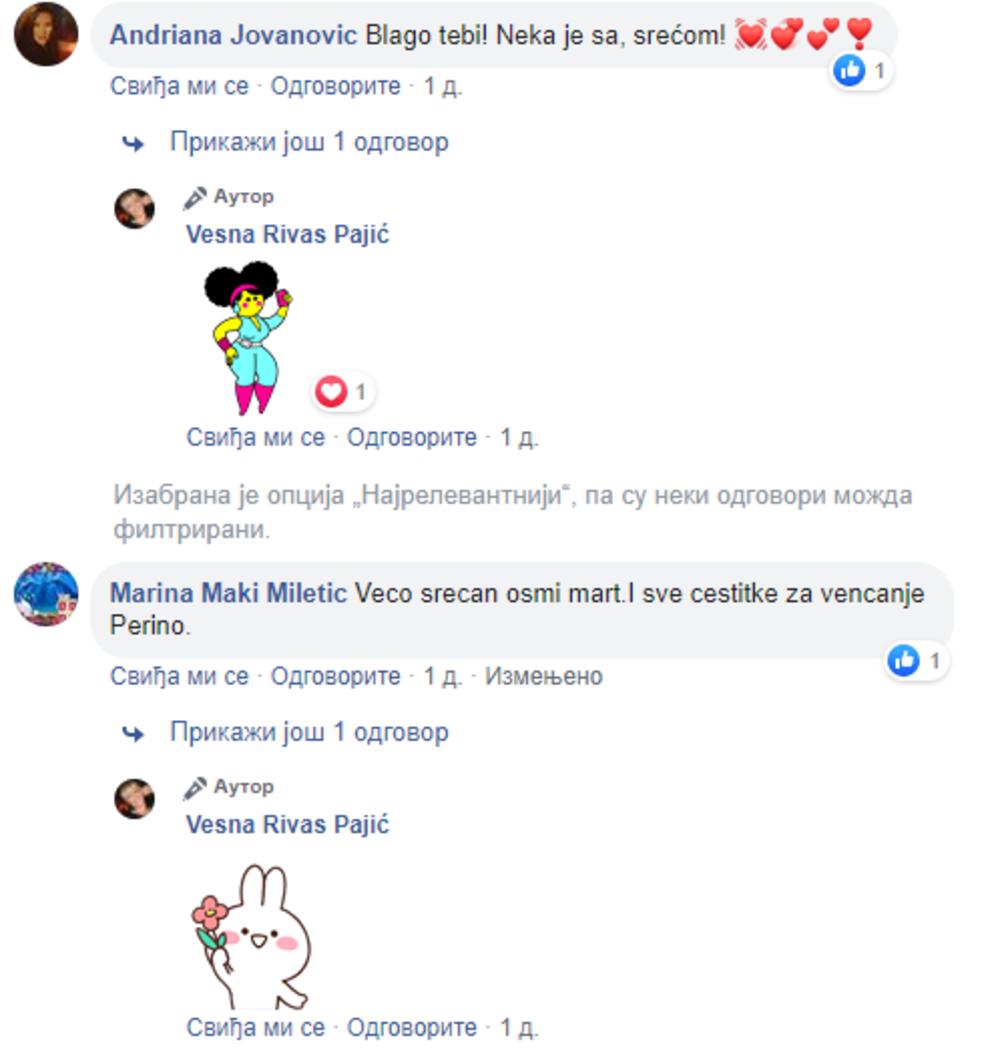 Vesnini pratioci su joj masovno čestitali u komentarima, a Vesna je na sve odgovarala vidno srećna.