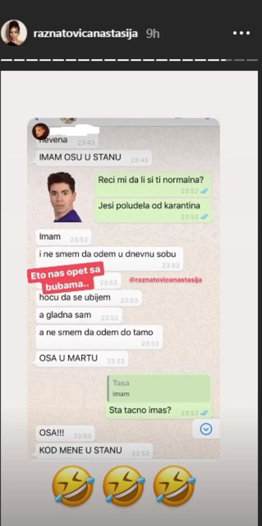 Naime, Anastasija je podelila sa svojim pratiocima na Instagramu deo prepiske sa prijateljicom.