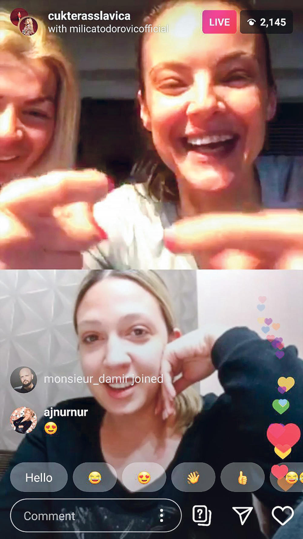 Najpre se u Miličin lajv uključila Slavica Ćukteraš, a mnogi fanovi pevačice iznenadili su se kako izgledaju bez šminke. Todorovićeva se tada našalila na račun svog izgleda, rekavši da izgleda kao „pripravnik pčelarstva“. S druge strane, Ćukterašova prema svojim pratiocima nije bila toliko ljubazna, pa je, kad su prokomentarisali to što je nenašminkana, počela da se svađa s njima.