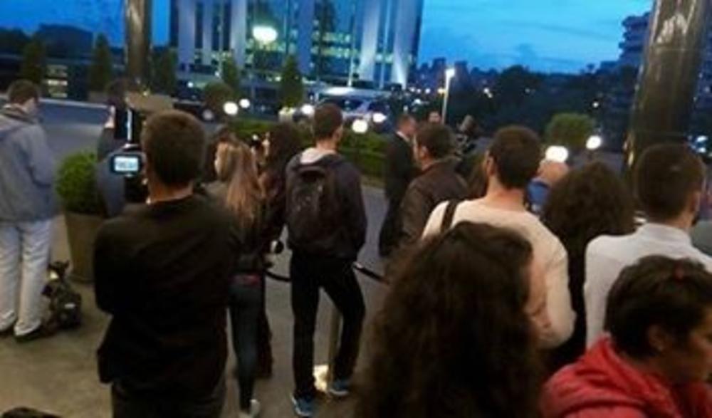 Zvezde večeri su stigle. Ceca i Anastasija su bukvalno proletele pored okupljene mase uz pomoć obezbeđenja, koje im je pravilo put.