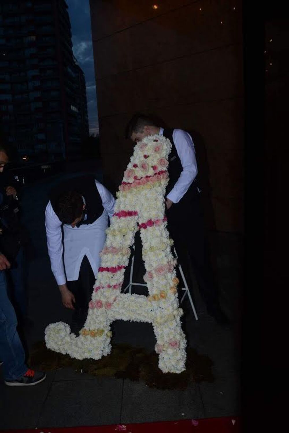 Početno slovo Anastasijinog imena je bilo postavljeno ispred ulaza u hotel Hajat u kojem se održavala ova proslava.