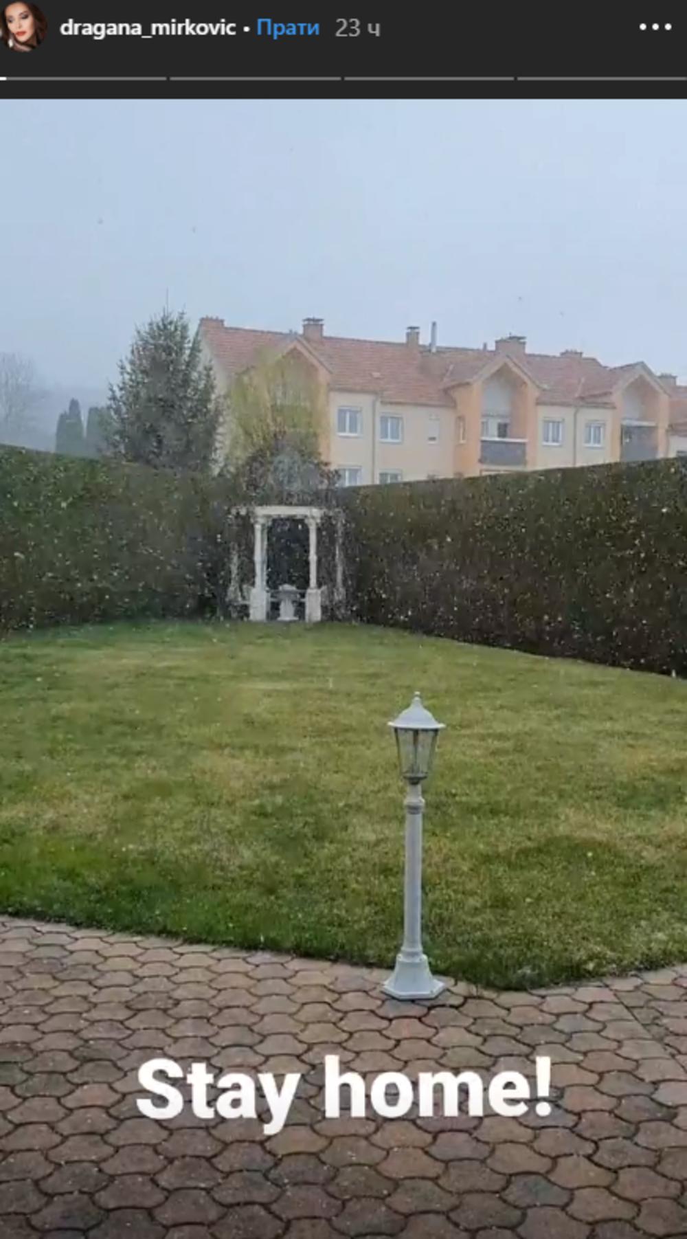 Naime, Dragana Mirković je objavila fotografiju iz svog raskošnog dvroca i pokazala svima da je ona u izolaciji.