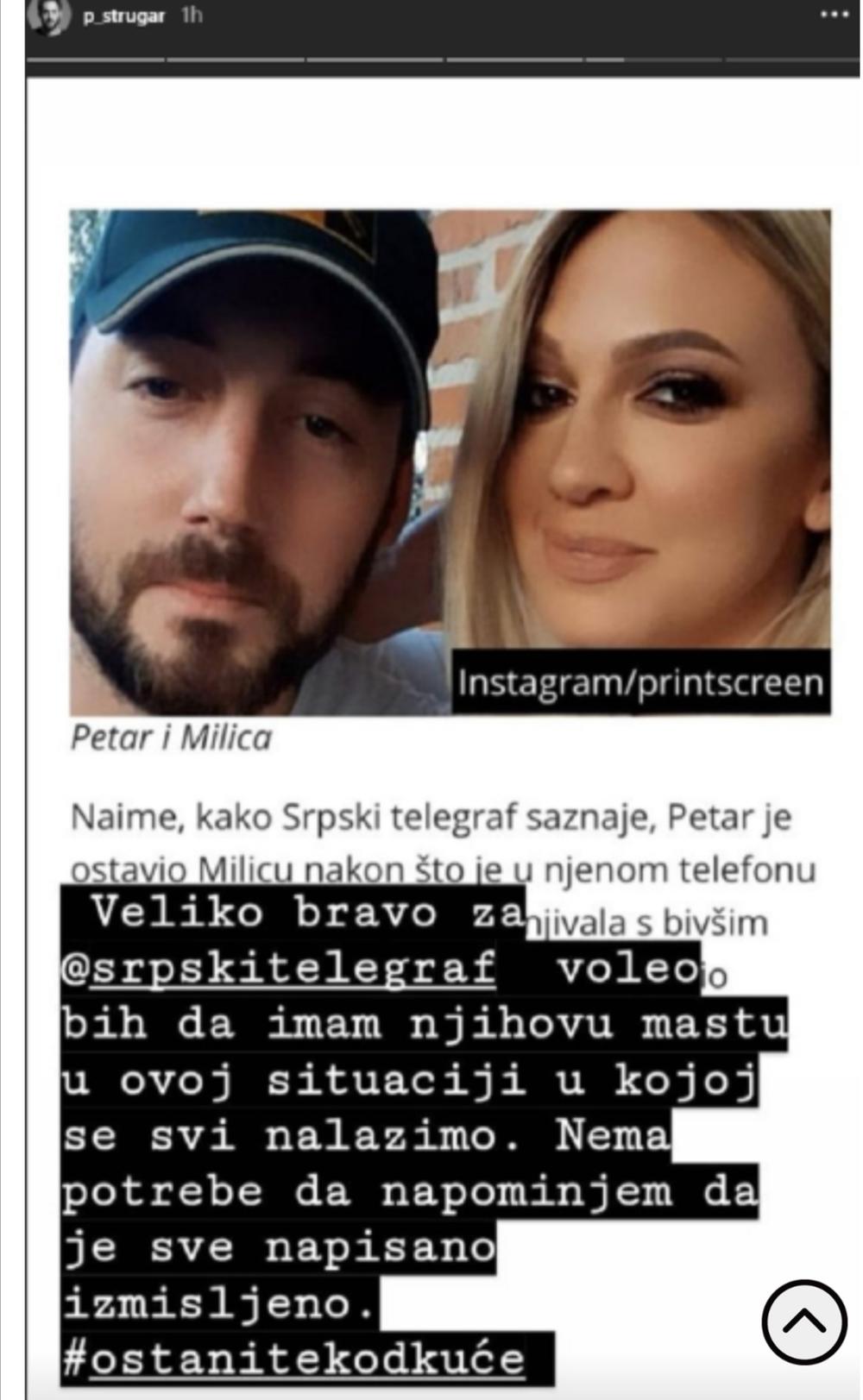 Jutros je kao bomba odjeknula vest da je jedan od najpopularnijih parova na domaćoj javnoj sceni, Milica Todorović i Petar Strugar, prekinuo svoj ljubavni odnos.