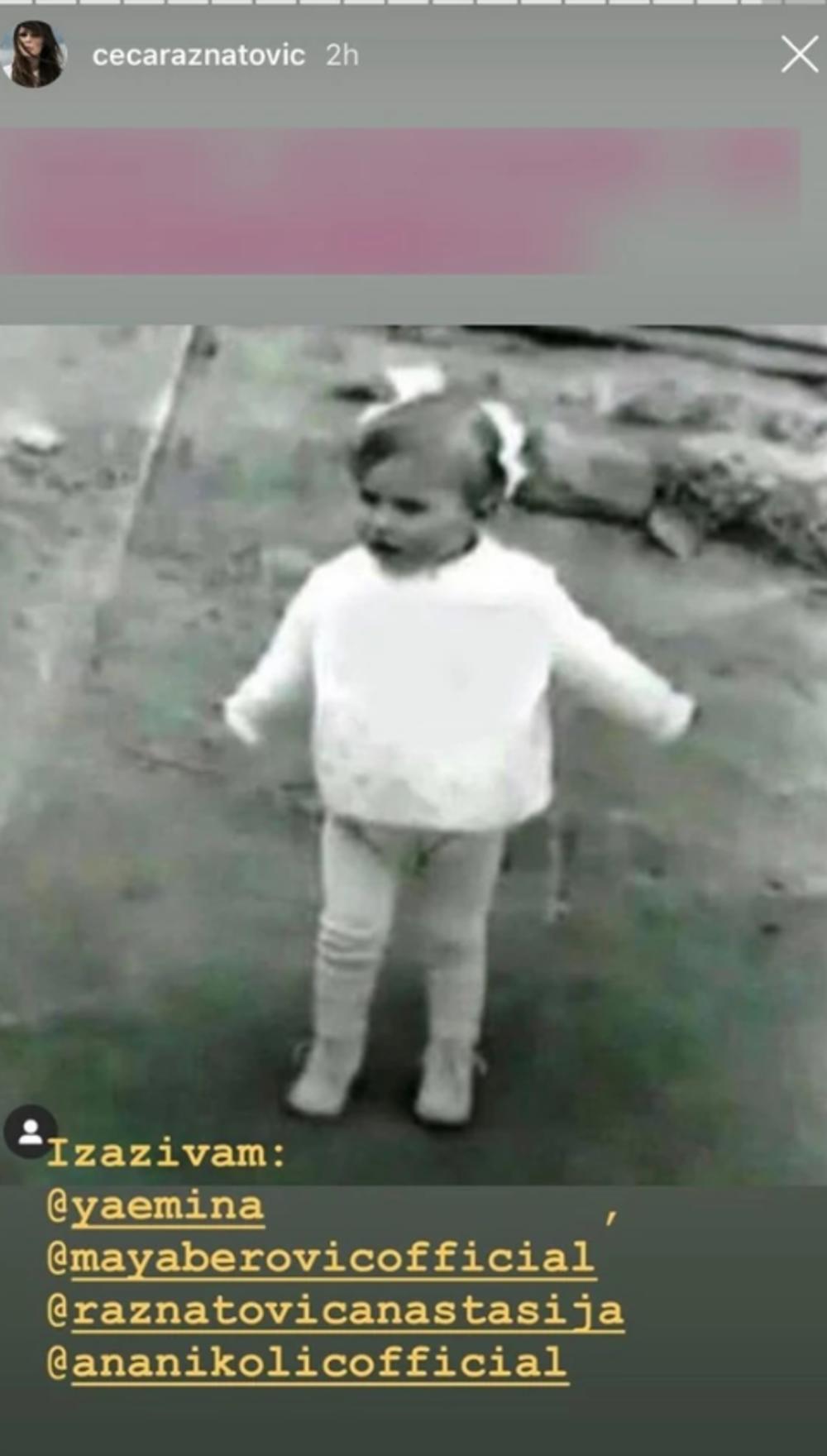 - Izazivam Eminu Jahović, Maju Berović, Anastasiju Ražnatović i Anu Nikolić - napisala je.