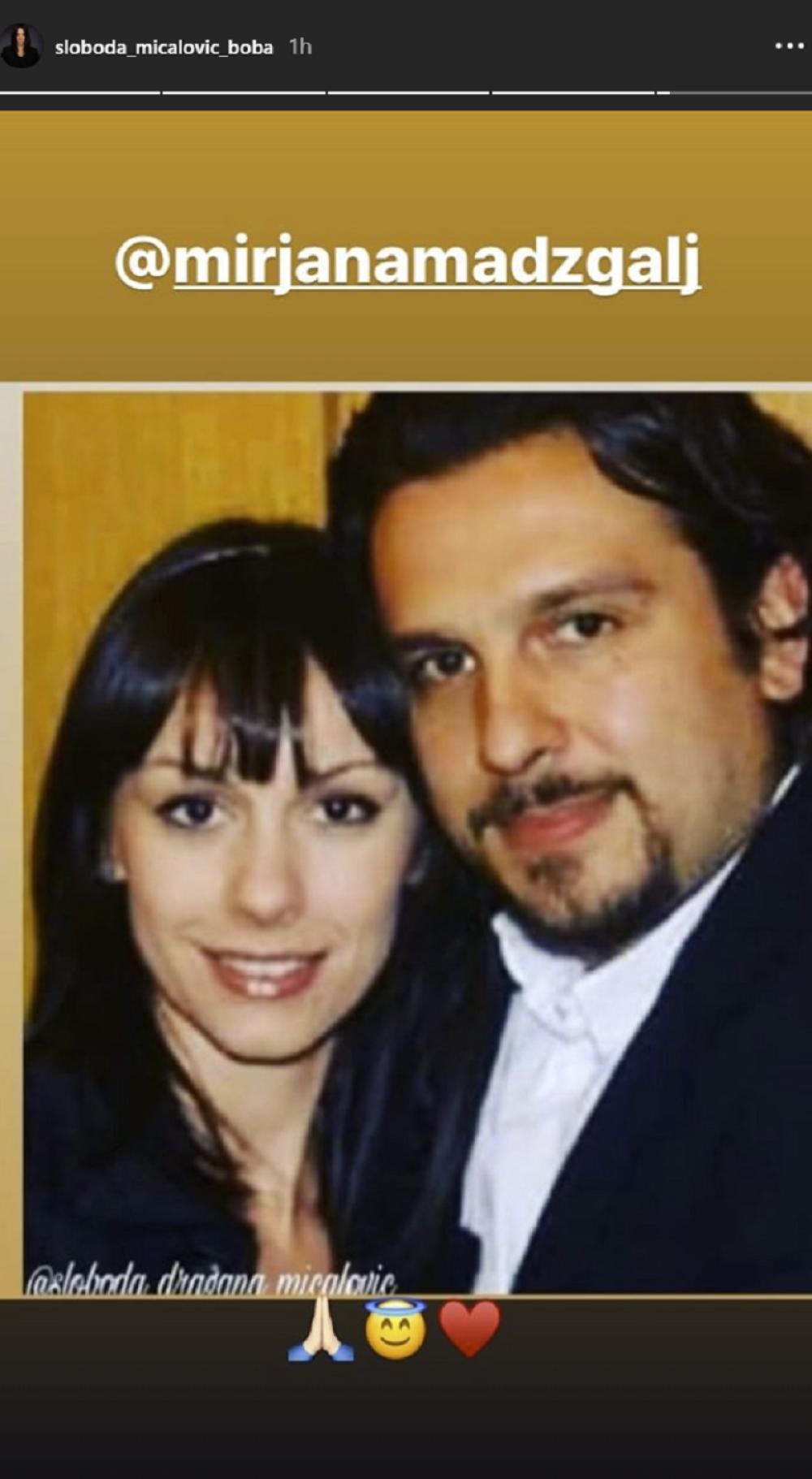 Glumica Sloboda Mićalović ne skriva koliko joj Marinko nedostaje, a na svom Instagram profilu objavila je njihovu zajedničku fotografiju, uz tri emotikona koji predstavljaju molitvu, anđela i srce.