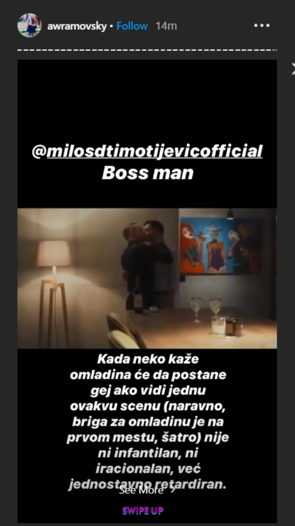 Nakon što se i sam glumac, Miloš Timotijević, oglasio po ovom pitanju, sada je to učinio i reditelj, Miloš Avramović, koji je poslao poruku javnosti putem svom Instagram storija.