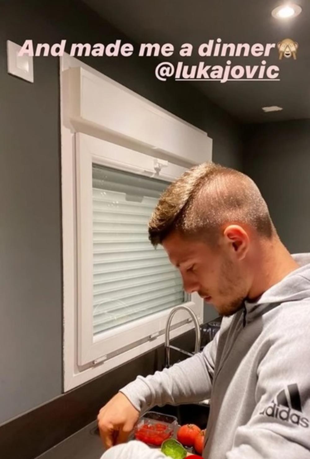 - I napravio mi večeru – napisala Miloševićeva, a na fotografiji se vidi kako Luka priprema sve sastojke potrebno za ukusno jelo.
