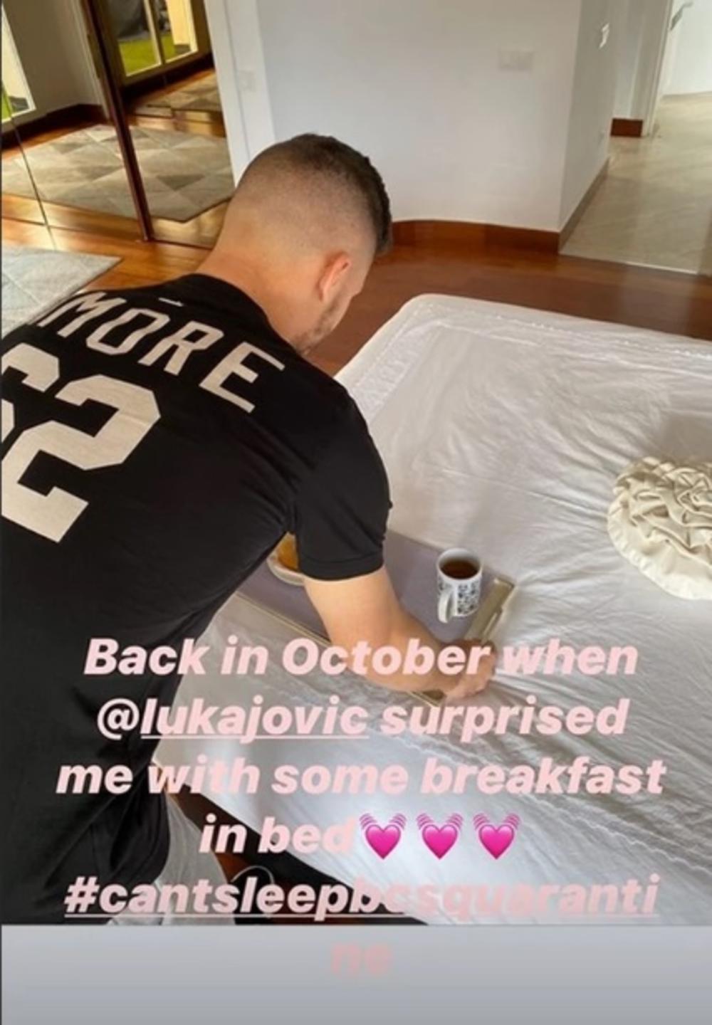 Na jednoj od fotografija se vidi kako Luka Jović donosi doručak u krevet i iznenađuje svoju devojku.