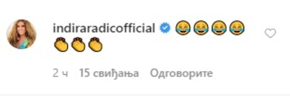 Mnogima je skrenuo pažnju i neobičan komentar Indire Radić koja je prokomentarisala fotku sa dosta emotikona koji umiru od smeha.