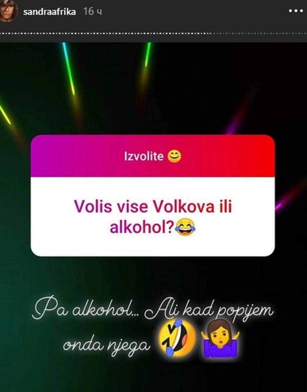 Sandra i Vladimir su, prema informacijama koje su dospevale u javnost, više puta raskidali i mirili se, a pevačica je sada od jednog obožavaoca dobila pitanje "Voliš li više Volkova ili alkohol?".