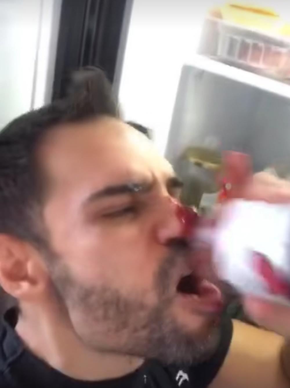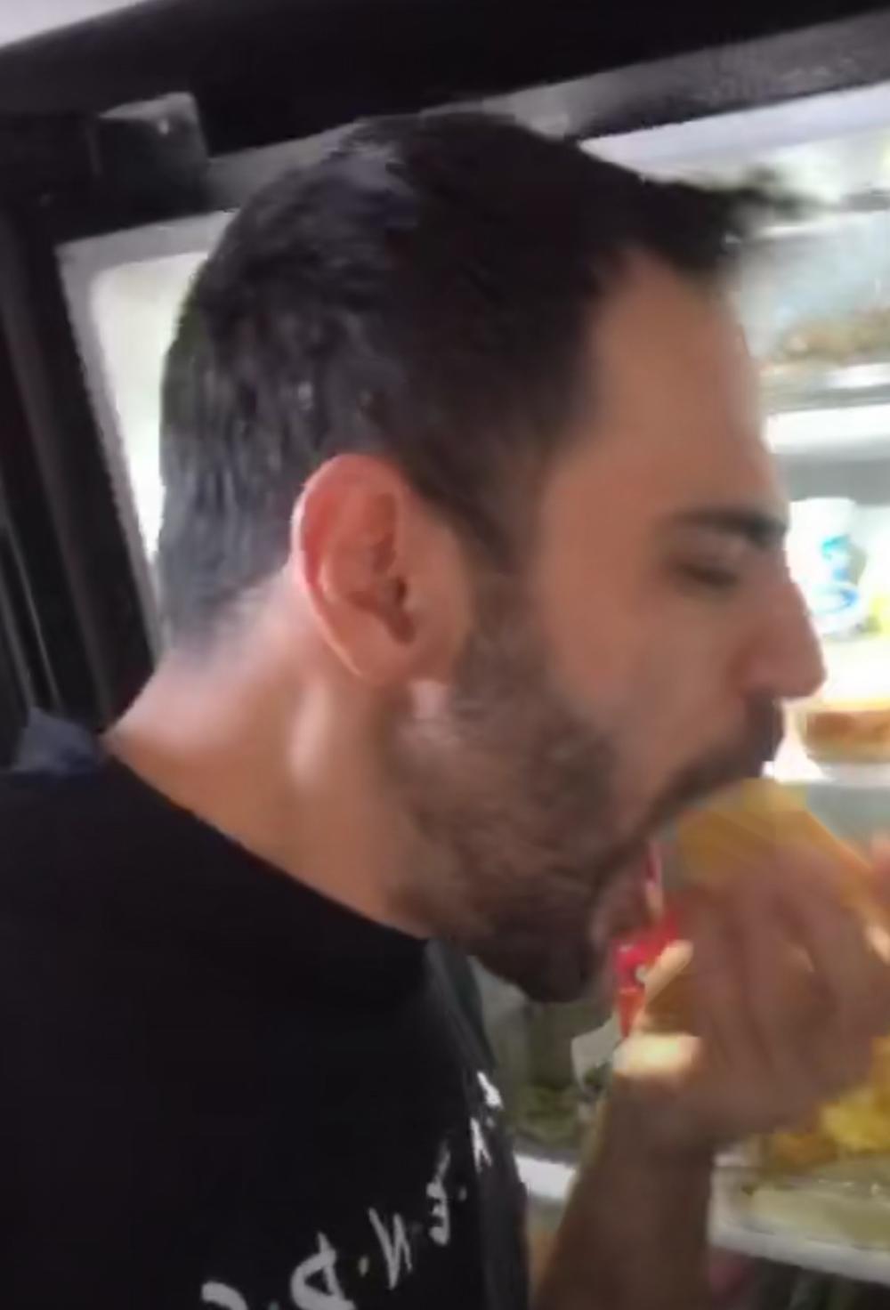 Glumac stoji kod frižidera i snima sam sebe kako jede, on je pune šake hrane gurao u usta, pa se u jednom momentu sve počelo lepiti za njegovu facu i cureti niz bradu.