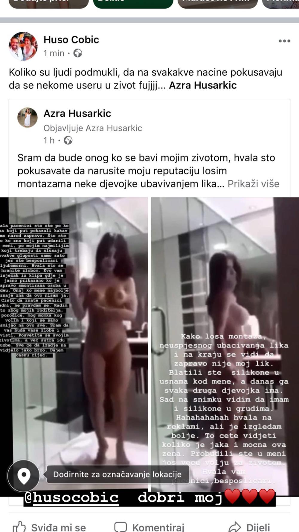 – Morala sam ovo da objavim, izvinite moji Facebook prijatelji zbog sadržaja slika, ali ne dam na sebe, na svoj obraz, roditelje. Ne dam da mi neko ruši reputaciju nakon toliko godina truda, zbog ovakvih paćenika da gubim vreme. Tužbe svakako idu. Od hakovanja mog profila, do nanošenja duševne i fizičke boli. Za sve to idu tužbe. Sram vas bilo – napisla je Azra.