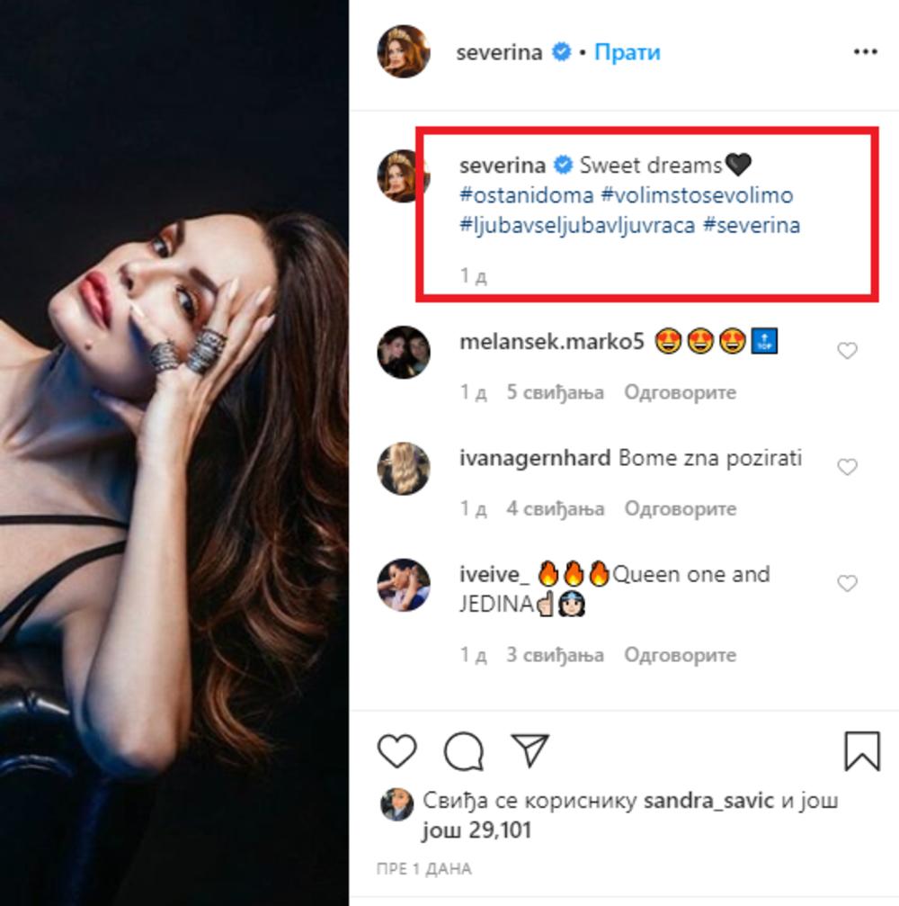 Neposredno pre toga Seve je ubacila sliku na svoj Instagram, gde je uz opis stavila "Ostanite kod kuće", odnosno na svom jeziku "Ostani doma".
