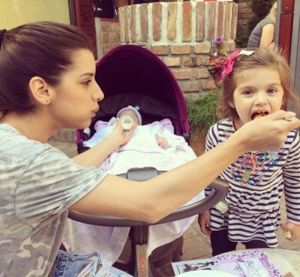 Ovog jutra je na Instagramu osvanula fotografija sa natpisom Mama hobotnica, na kojoj vidimo Jovanu kako istovremeno hrani obe ćerkice.