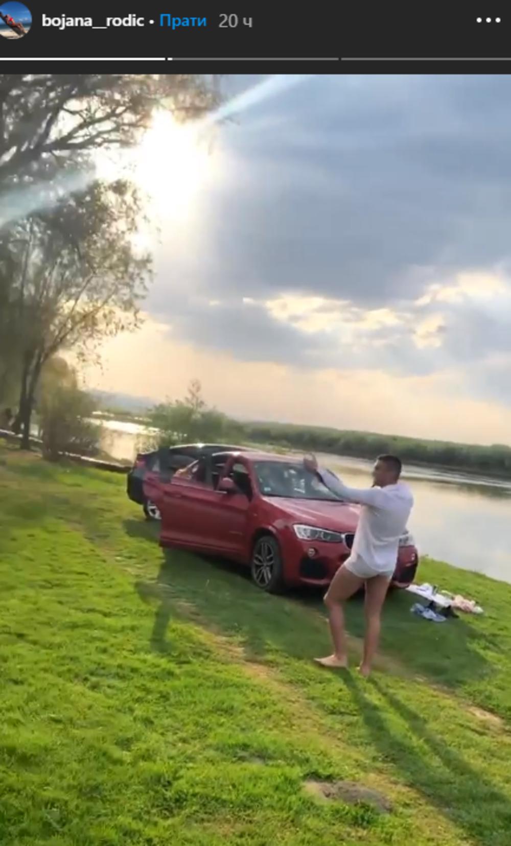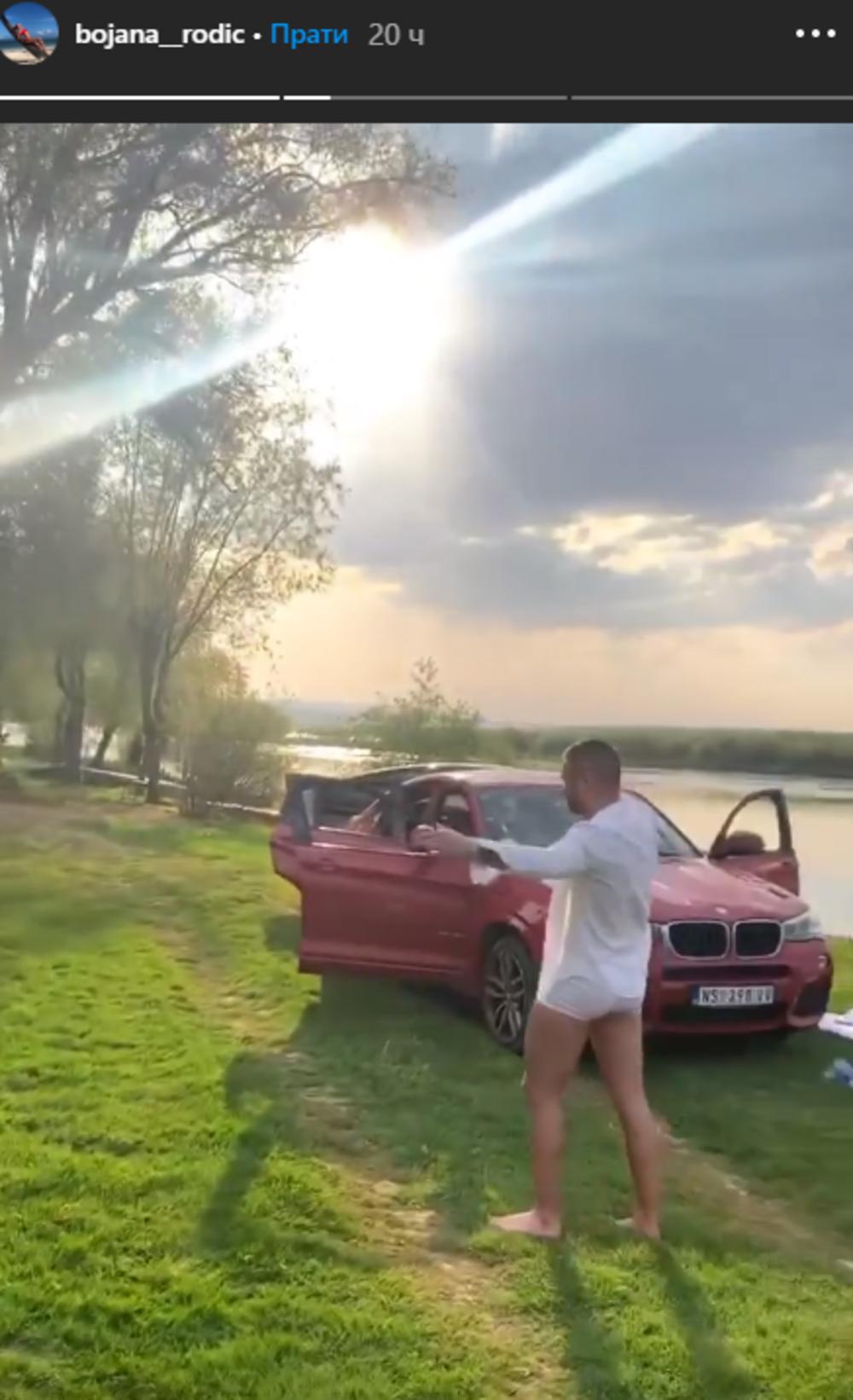 Ubrzo je objavila i snimak, na kom se vidi društvo koje se skupilo, pobacani alkohol, i Mirko koji u gaćama peva.