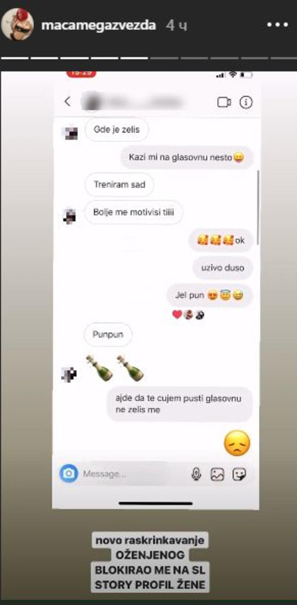 Rijaliti zvezda je iste poruke objavila i na društvenim mrežama, sa sve profilima muža i žene, koji su je odmah potom blokirali na Instagramu.