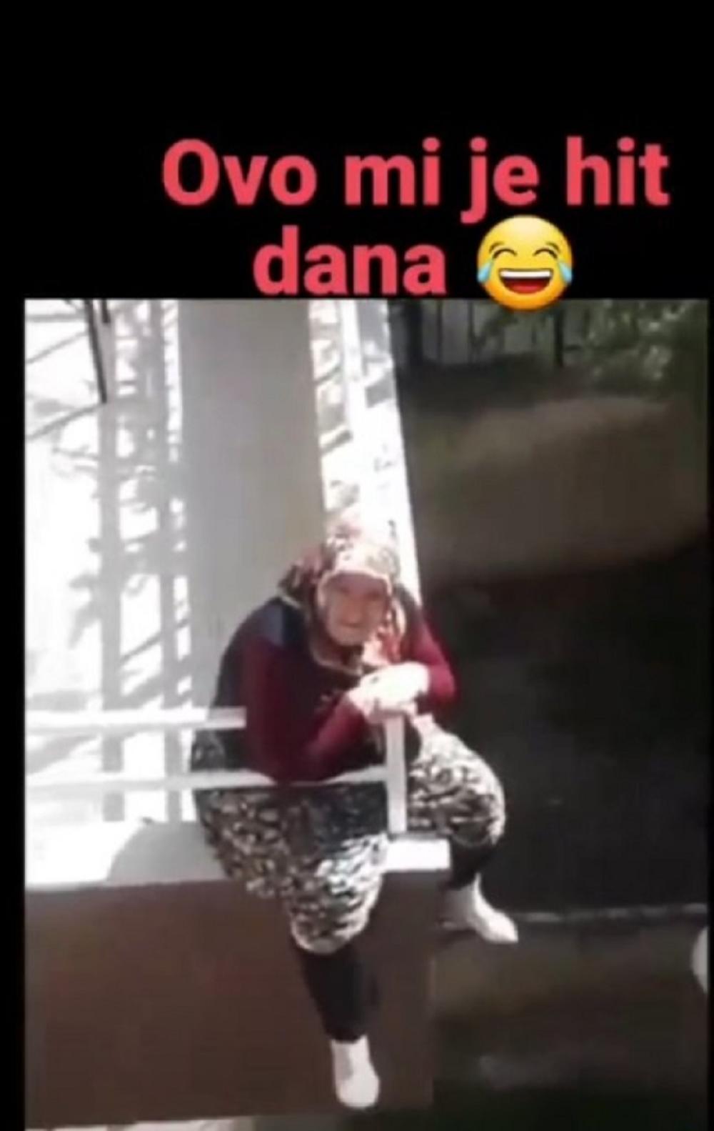 U snimku koji je ona nazvala hitom dana baka sedi na ivici balkona i maše nogama vidno neraspoložena što ne može van stana.