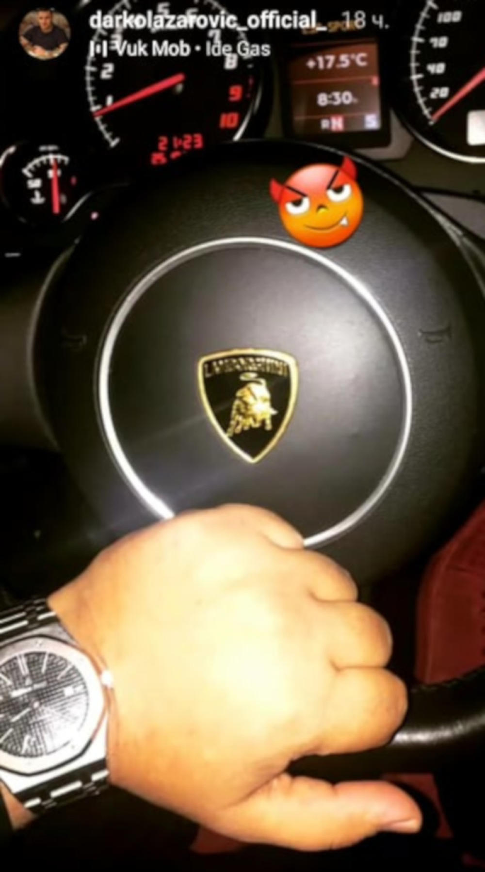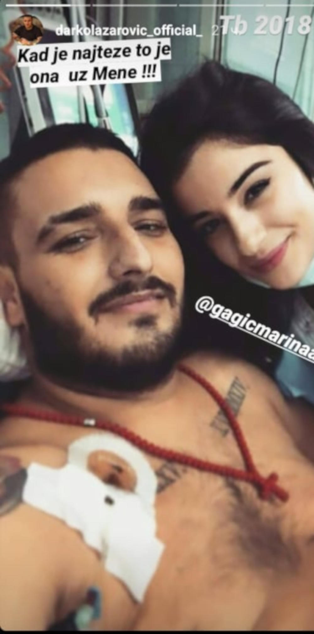 On je samo par sati pre hapšenja obavio dva storija. Na jednoj fotografiji je slika iz bolnice sa verenicom Marinom, dok je još bio u bolničkom krevetu, a na drugom storiju fotografija volana gde se vidi da je pevač spreman za vožnju.