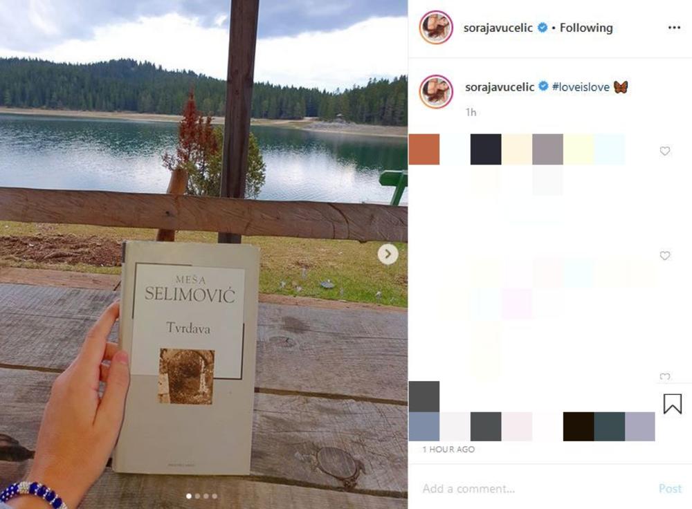 Soraja je postavila niz fotografija i snimaka na kojima je moguće videti kako uživa u "Tvrđavi", romanu Meše Selimovića, što i nije iznenadilo one koji je prate na ovoj društvenoj mreži jer Vučelićeva često deli sa pratiocima literaturu koju čita u datom momentu.