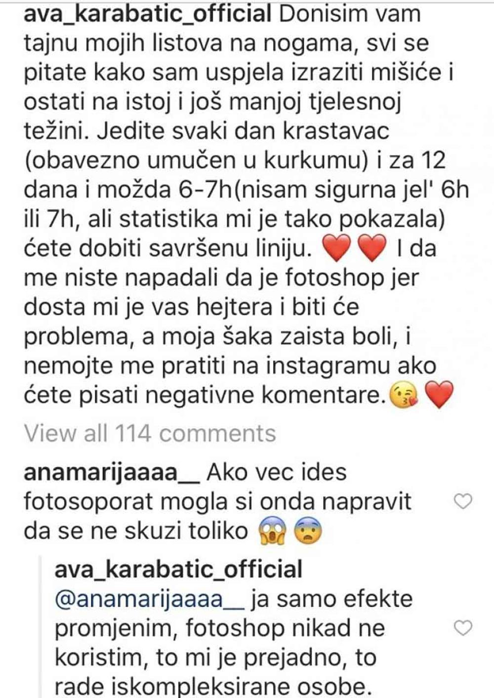 Karabatićeva se dugo raspravljala sa fanovima kako nije korigovala telo, već je izvajano od truda i vežbanja.