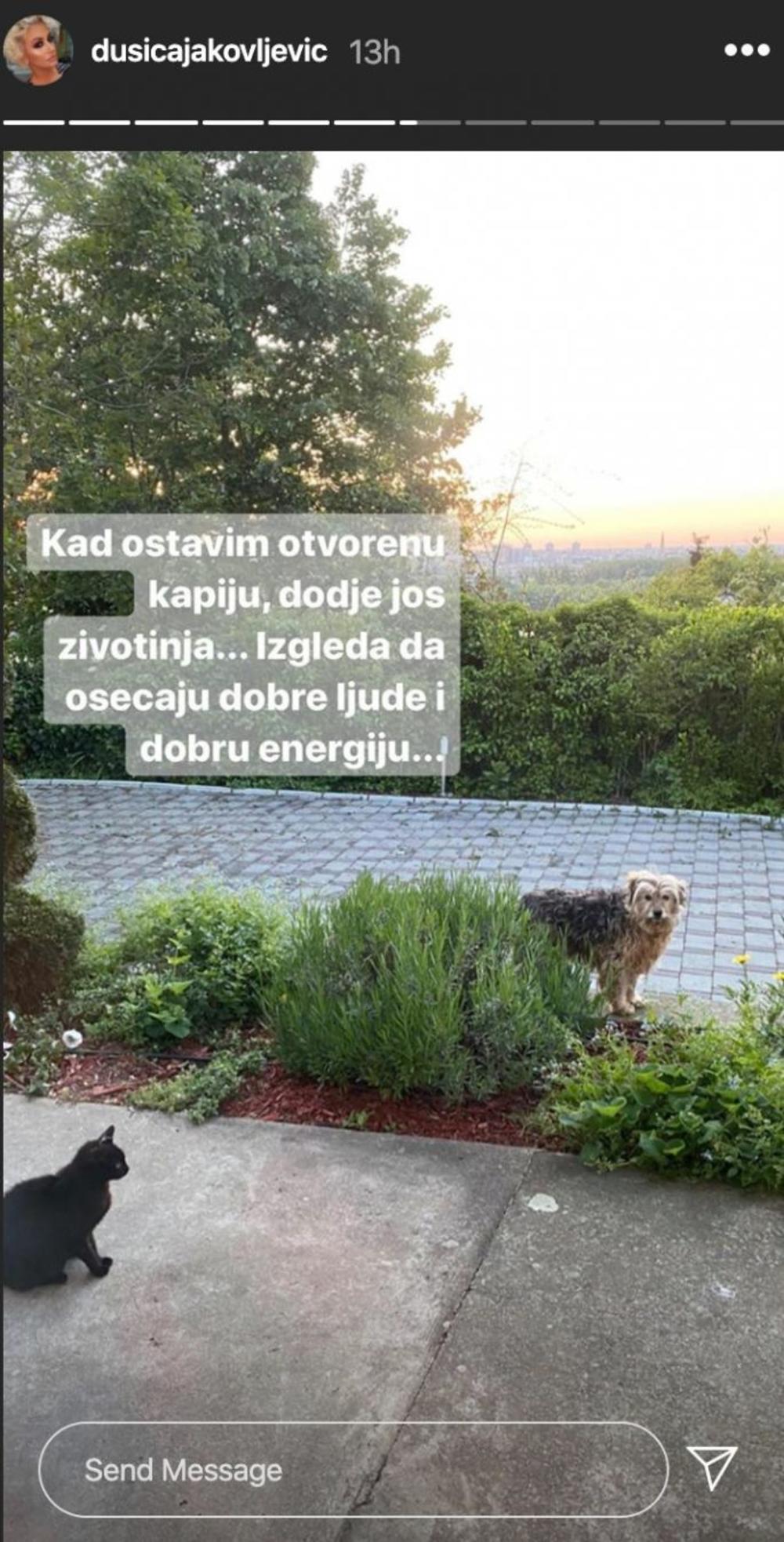 - Kad ostavim otvorenu kapiju, dođe još životinja. Izgleda da osećaju dobre ljude i dobru energiju - napisala je Dušica uz sliku psa i mačke.