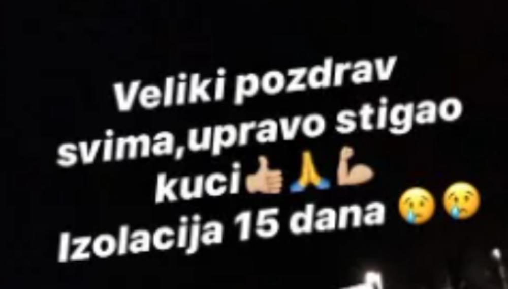 Belić je odlučio sada da se obrati svojim pratiocima na Instagramu koje je obavestio da je stigao u svoju rodnu Hrvatsku, i da ga sada očekuje izolacija u trajanju od 15 dana, što je procedura u ovom slučaju.