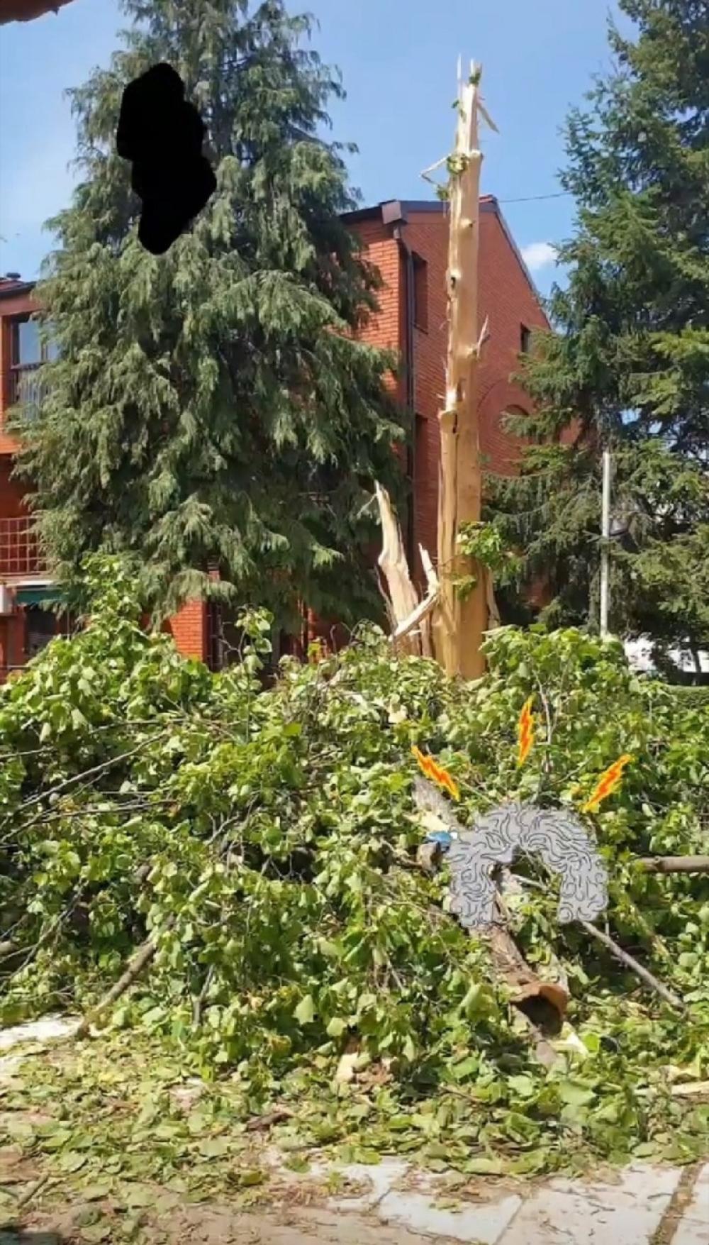 Usled vremenske nepogode, grom je udario u veliko drvo koje je palo tik ispred Brenine kapije. U pozadini se mogla čuti žena koja je bila prestravljena zbog ovoga, pa je opisivala kako je izgledalo kada je drvo palo.