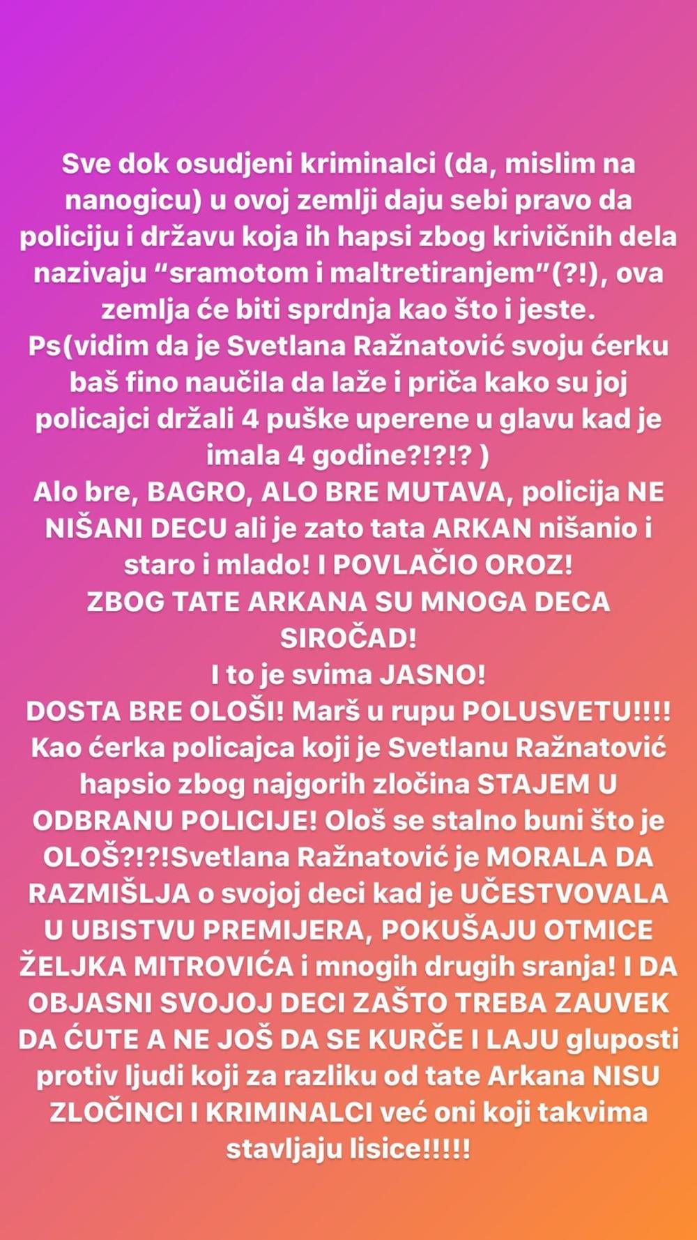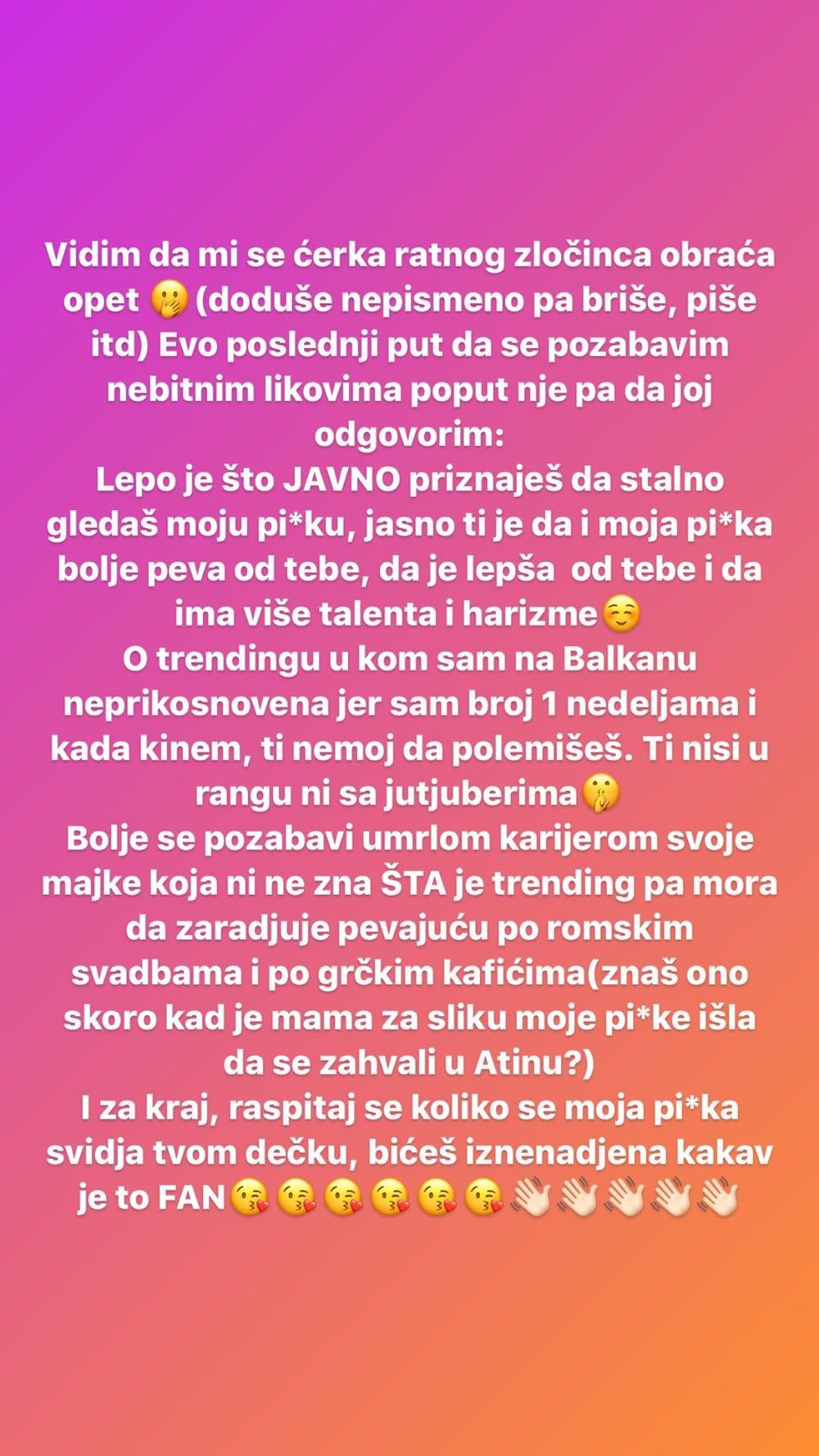 Jelena Karleuša je ispratila celu emisiju i sa zanimanjem gledala, pa je nakon nje na Instagramu Ceci uputila brutalan komentar.