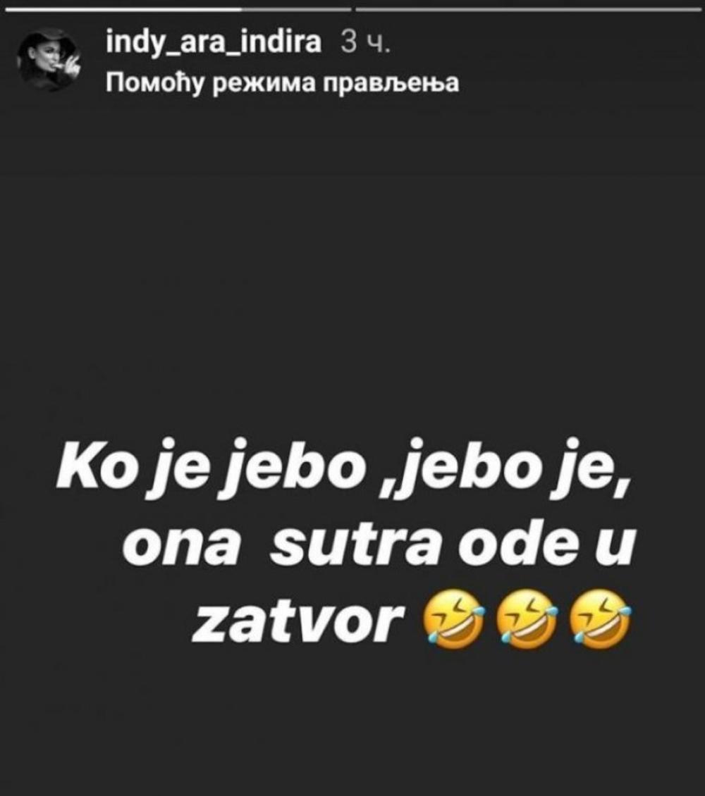 S obzirom na to da je akcija o hapšenju sprske starlete u žiži javnosti, mnogi su u Indinoj objavi prepoznali upravo pomenutu starletu.