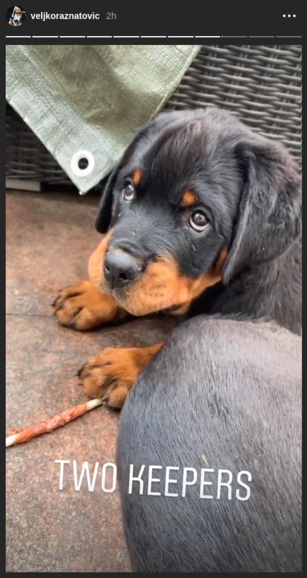 On je danas objavio fotografiju na kojoj se vide dva mala šteneta Rotvajlera, a u opisu videa, Ražnatović je napisao: "Dva čuvara!".